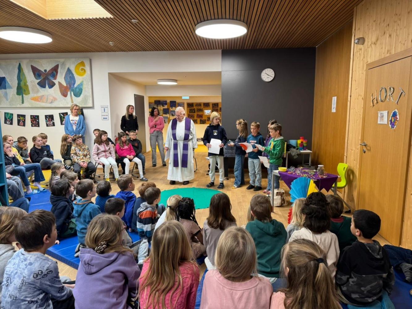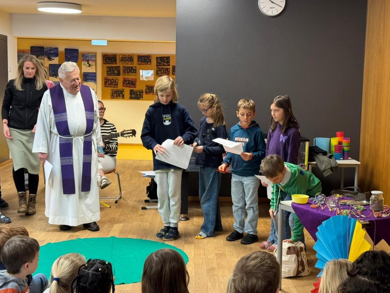Am Aschermittwoch haben wir gemeinsam mit Pfarrer Thomas eine Andacht gefeiert und über die Fastenzeit gesprochen. Dabei haben wir gelernt, was die Fastenzeit bedeutet, wie lange sie dauert und warum sie für viele Menschen eine besondere Zeit ist.